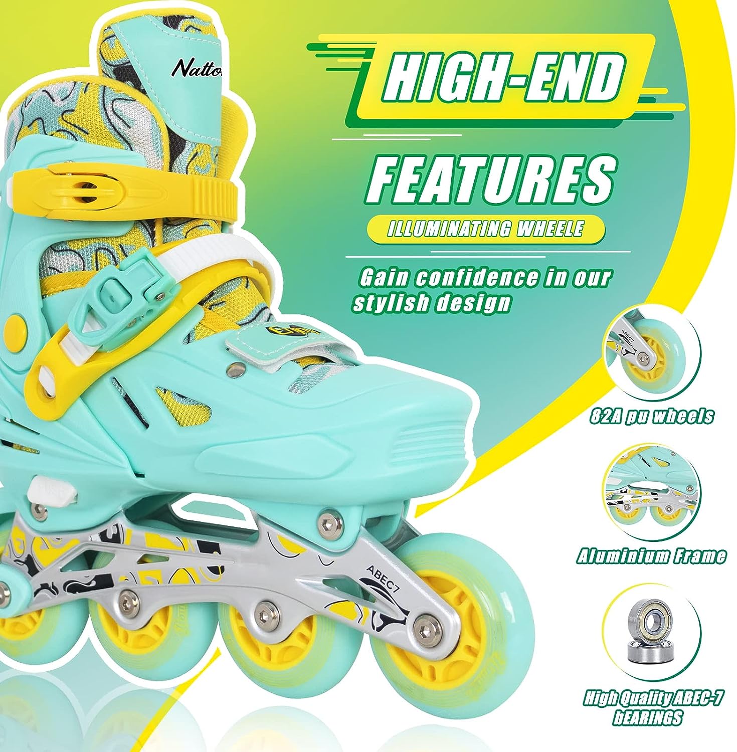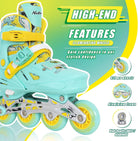 Equipped with 82A high-elasticity PU wheels and ABEC-7 bearings, these inline skates offer stable and smooth movement on various surfaces, empowering young skaters to fearlessly explore their skills.