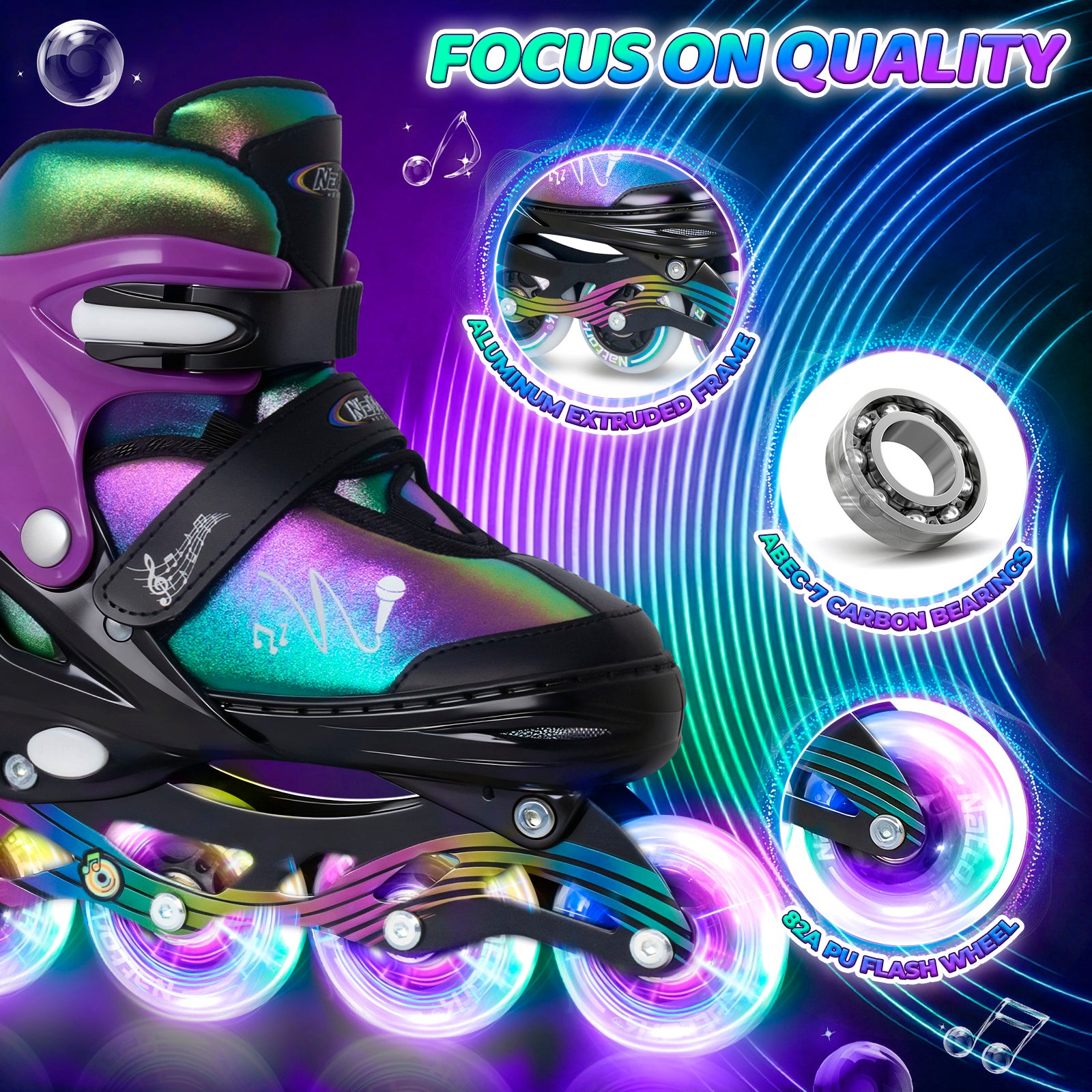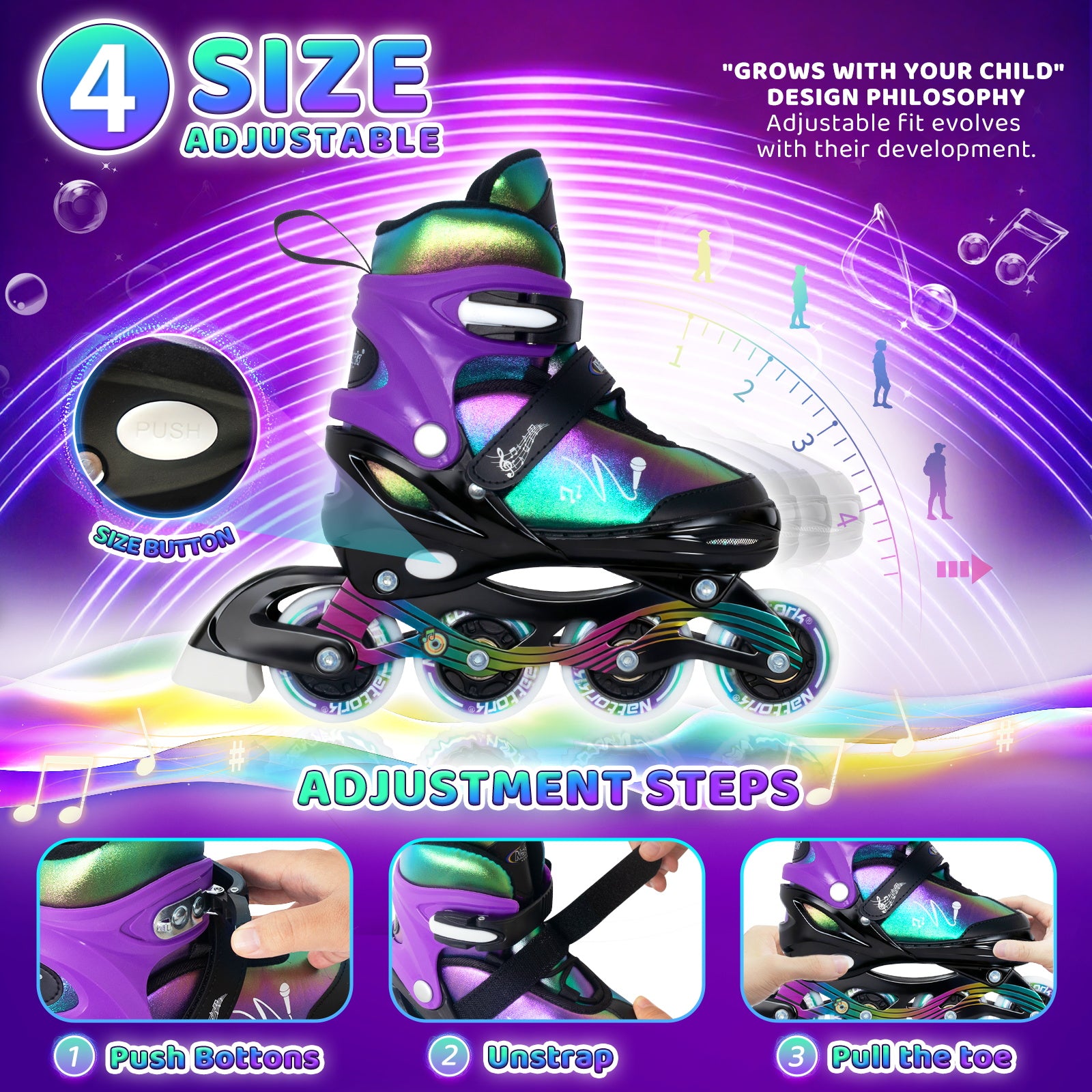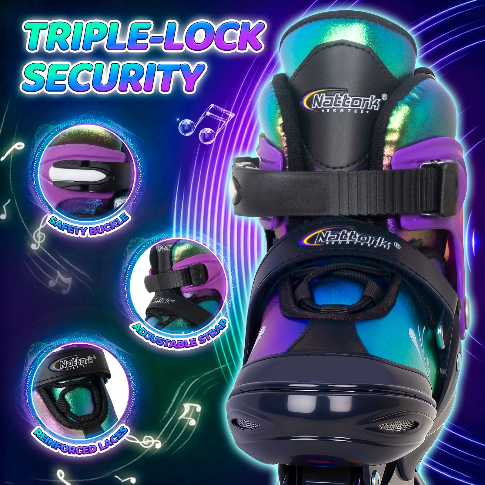 Bring rhythm and color to every skating adventure with the Nattork Melody Inline Skates — designed to grow with your child and shine bright wherever they roll. From smooth indoor sessions to glowing evening rides, these skates turn movement into pure joy.