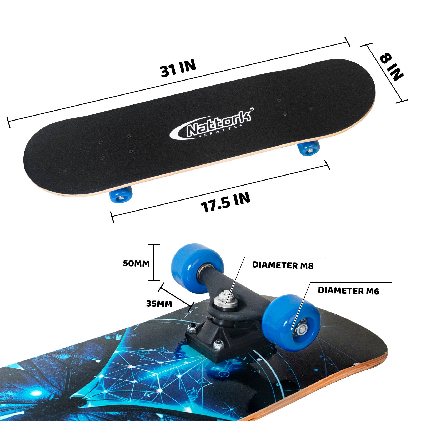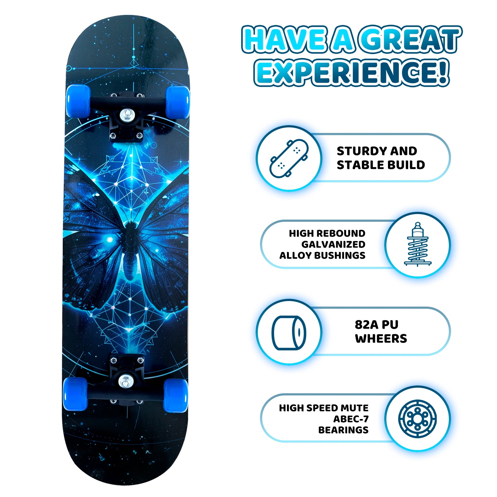 Nattork 31 Inch Skateboard - Bule Butterfly
