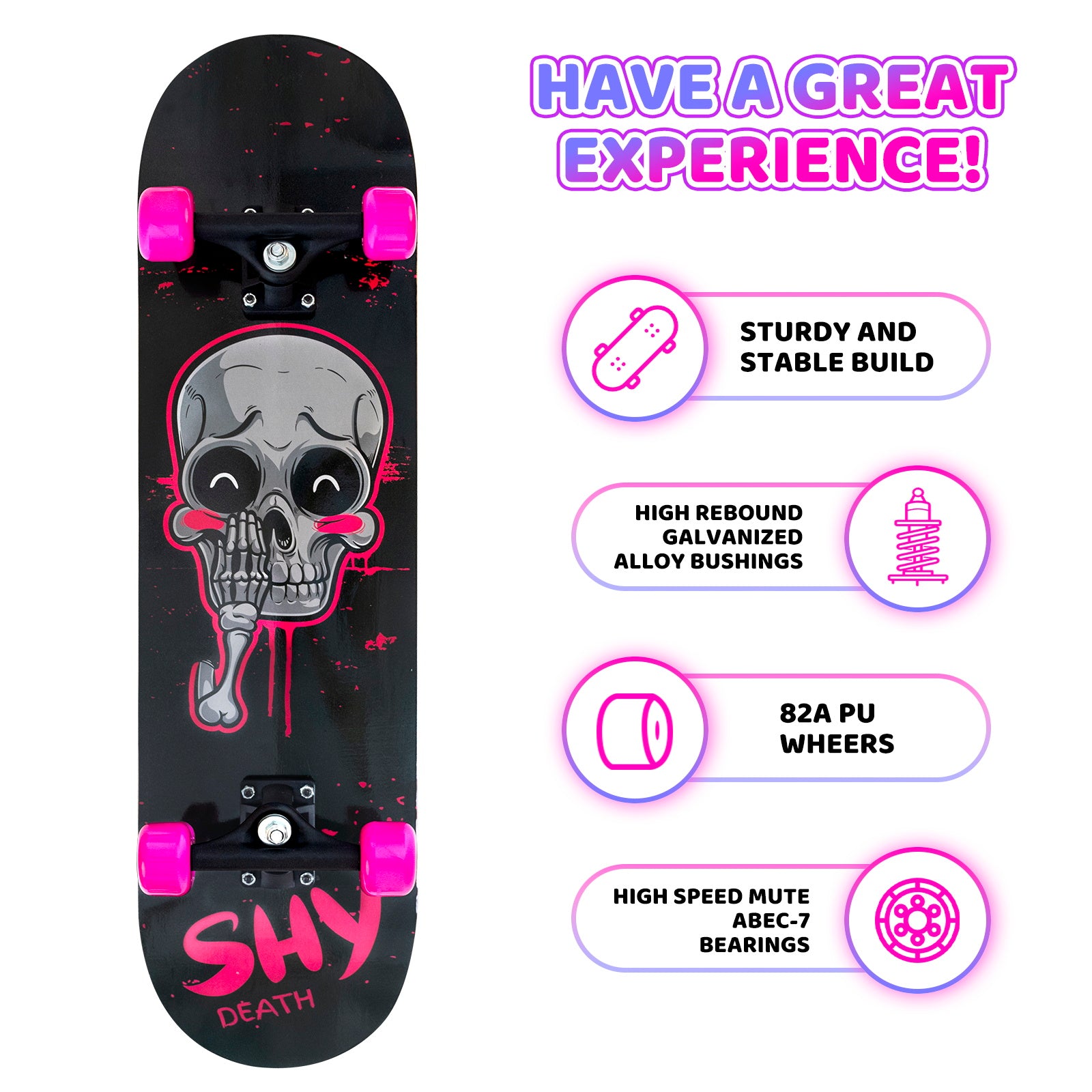 Nattork 31 Inch Skateboard - Pink Skeleton