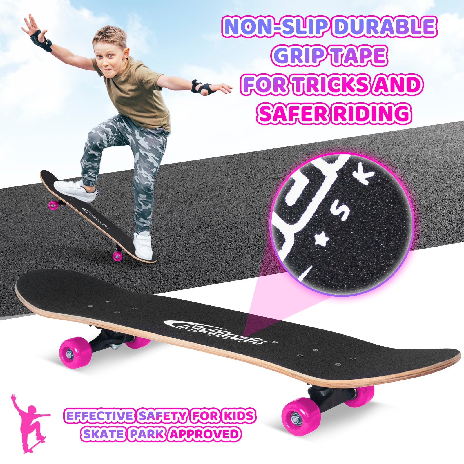 Portable & Lightweight: Looking for a lightweight skateboard for kids? This one’s got you covered! Built with sturdy maple wood but still easy to carry, it’s a great skateboard for small kids to take anywhere, from the park to the backyard.