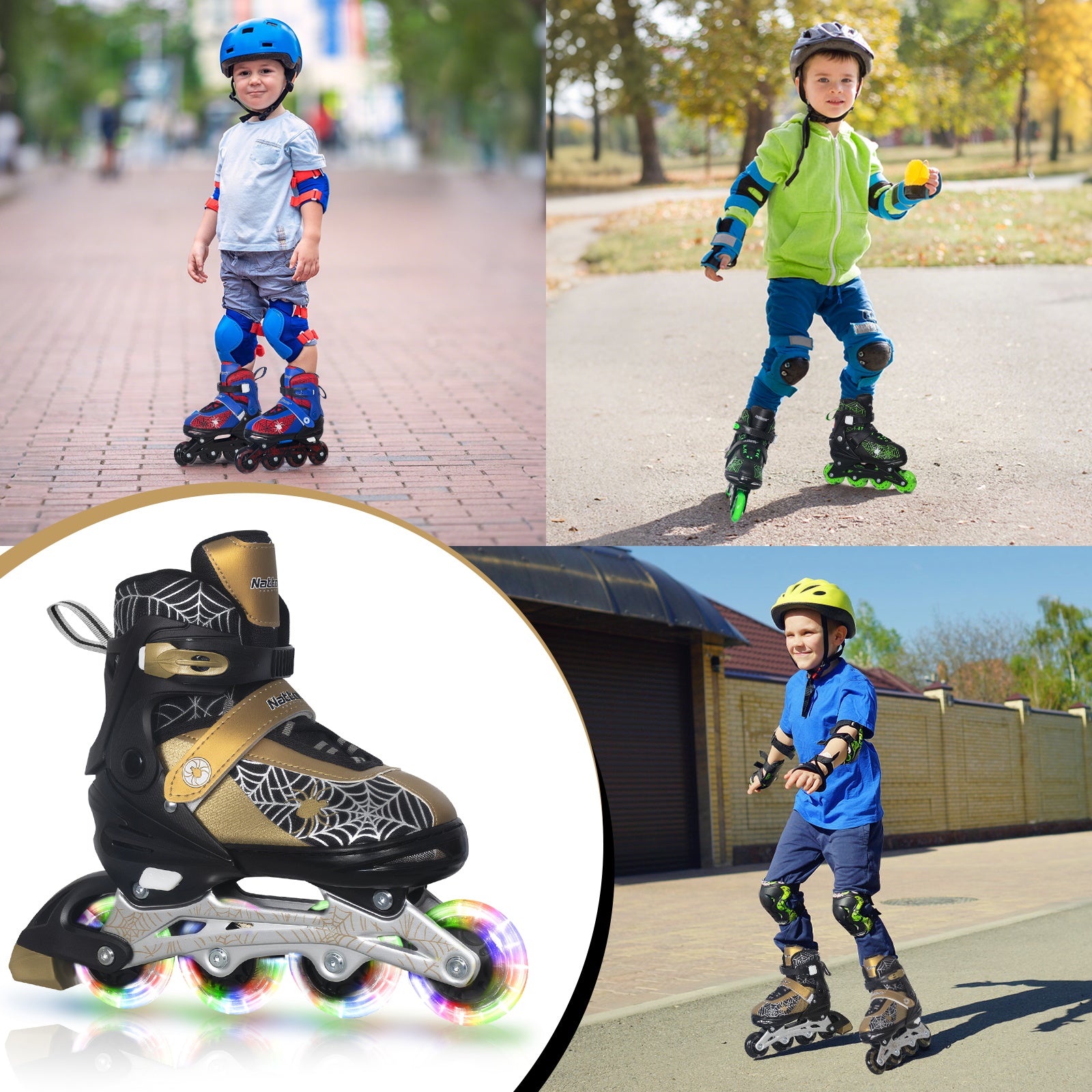 Most Nattork skates are adjustable across 4 sizes, so they can grow with your child — simply press the size-adjust button to extend the skate as their feet grow.