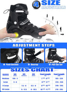 La versatilidad es clave, ya que estos patines ofrecen cuatro opciones de tamaño ajustable , lo que elimina las preocupaciones por encontrar el ajuste incorrecto a medida que los pies de los niños crecen. Con el conveniente sistema de ajuste de tamaño ONE-PUSH-CHANGE, encontrar el ajuste perfecto se convierte en una tarea muy sencilla, lo que garantiza una comodidad y una estabilidad inigualables.