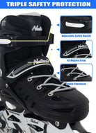 Safety takes center stage with Nattork's inline skates, featuring a triple lock protection system. The top buckle secures the ankle, an additional nylon strap adds an extra layer of security, while the laces ensure a precise fit. This triple-layered approach ensures a snug fit, providing comprehensive support and protection.