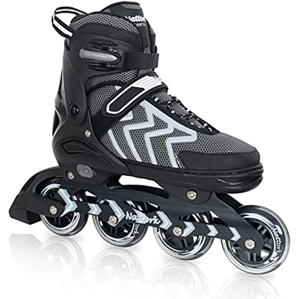 Most Nattork skates are adjustable across 4 sizes, so you can even share with your family and friends — simply press the size-adjust button to extend the skate.