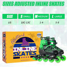 Los patines en línea para niños están equipados con Ruedas de PU de alta elasticidad 82A y cojinetes ABEC-7 que ofrecen un movimiento estable y suave en diversas superficies interiores y exteriores. Esto inspira a los patinadores jóvenes a expandir sin miedo sus habilidades de patinaje.