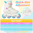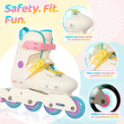 Say goodbye to outgrowing skates too soon! With just one button, these kids inline skates expand across 4 adjustable sizes, making them a long-lasting companion for children aged 4 to 12. Each adjustment ensures a custom, snug fit for safe and confident rides — indoors or outdoors.