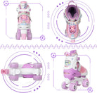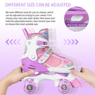 Estos patines son increíblemente ajustables y ofrecen Cuatro opciones de tamaño diferentes . Esto significa que ya no tendrá que preocuparse por elegir el tamaño incorrecto o por que los pies de su hijo se queden pequeños demasiado rápido. Con la función de ajuste de tamaño con UNA SOLA PULSACIÓN, puede encontrar sin esfuerzo el ajuste perfecto, lo que proporciona una comodidad y estabilidad óptimas para los pies en crecimiento de su pequeño.