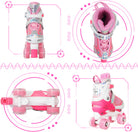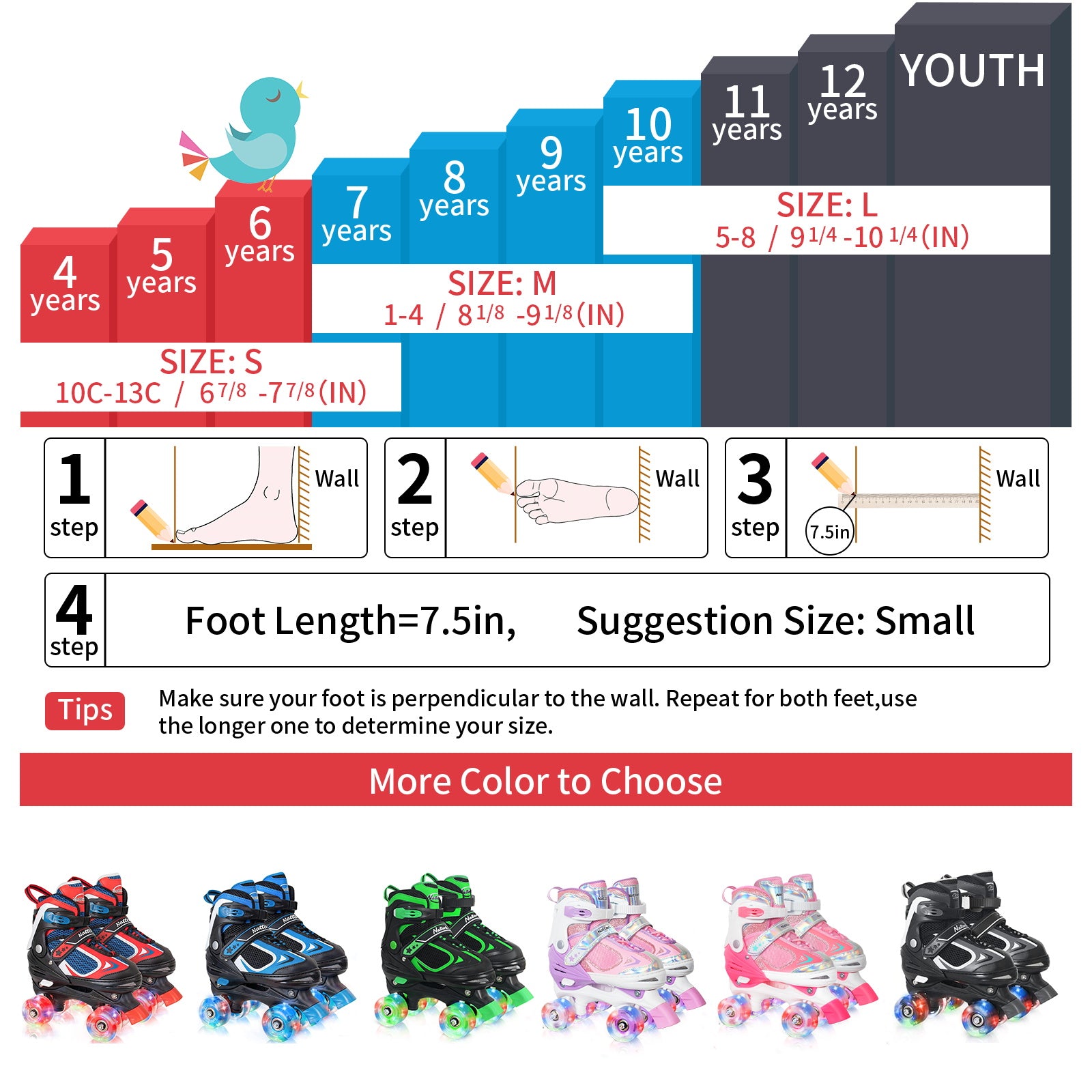 Estos patines son increíblemente ajustables y ofrecen Cuatro opciones de tamaño diferentes . Esto significa que ya no tendrá que preocuparse por elegir el tamaño incorrecto o por que los pies de su hijo se queden pequeños demasiado rápido. Con la función de ajuste de tamaño con UNA SOLA PULSACIÓN, puede encontrar sin esfuerzo el ajuste perfecto, lo que proporciona una comodidad y estabilidad óptimas para los pies en crecimiento de su pequeño.