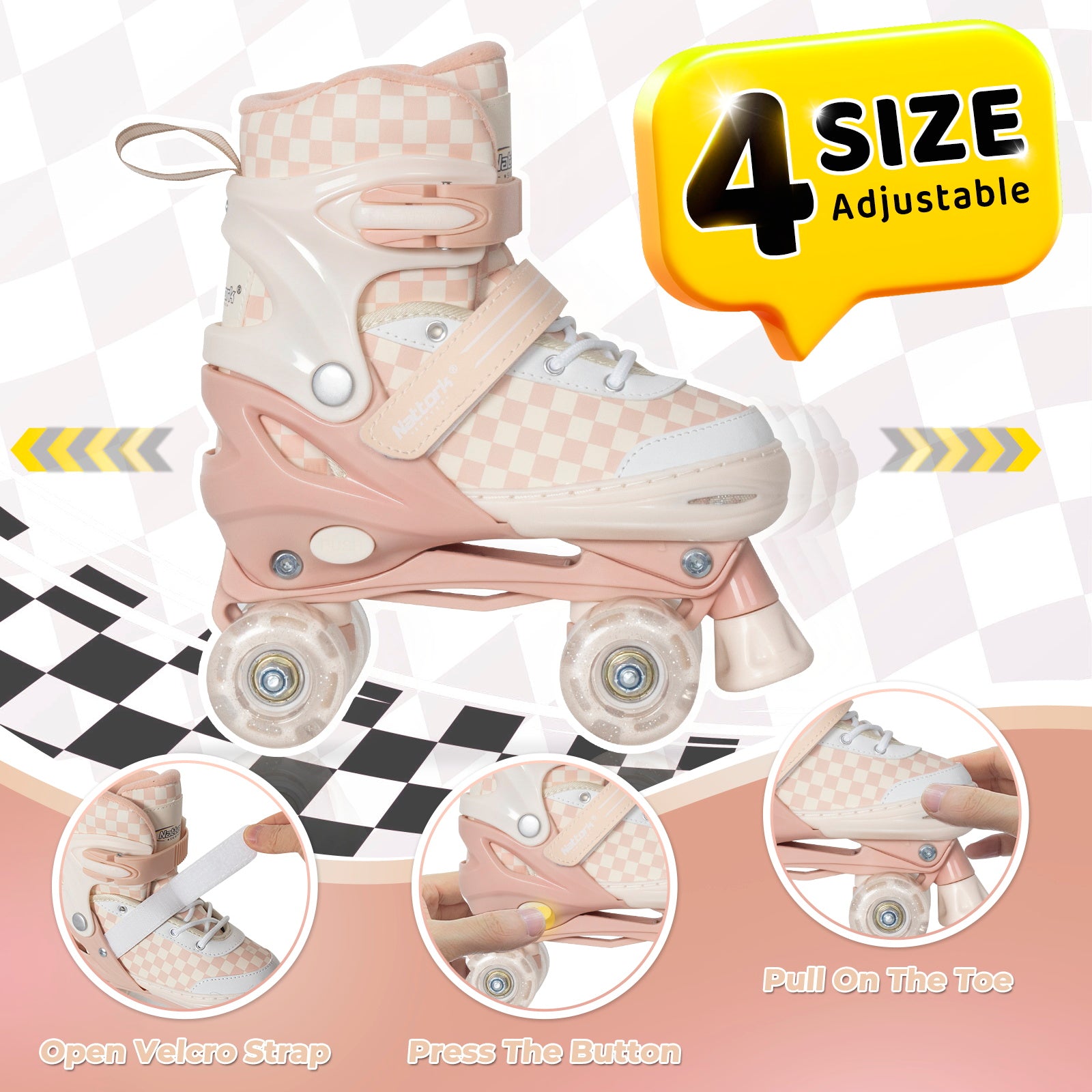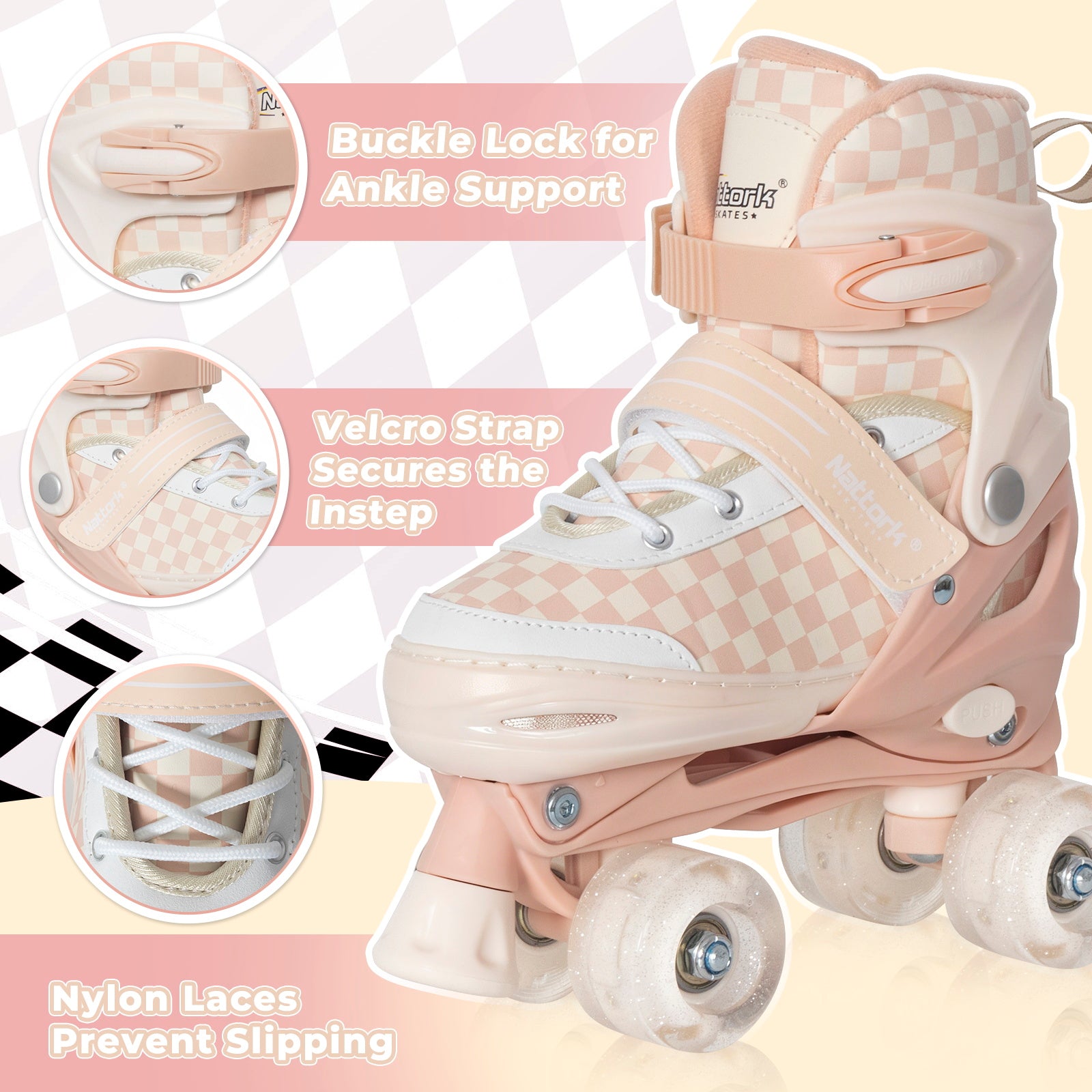 Nattork Checkerboard Adjustable Roller Skates for Growing Kids & Teens