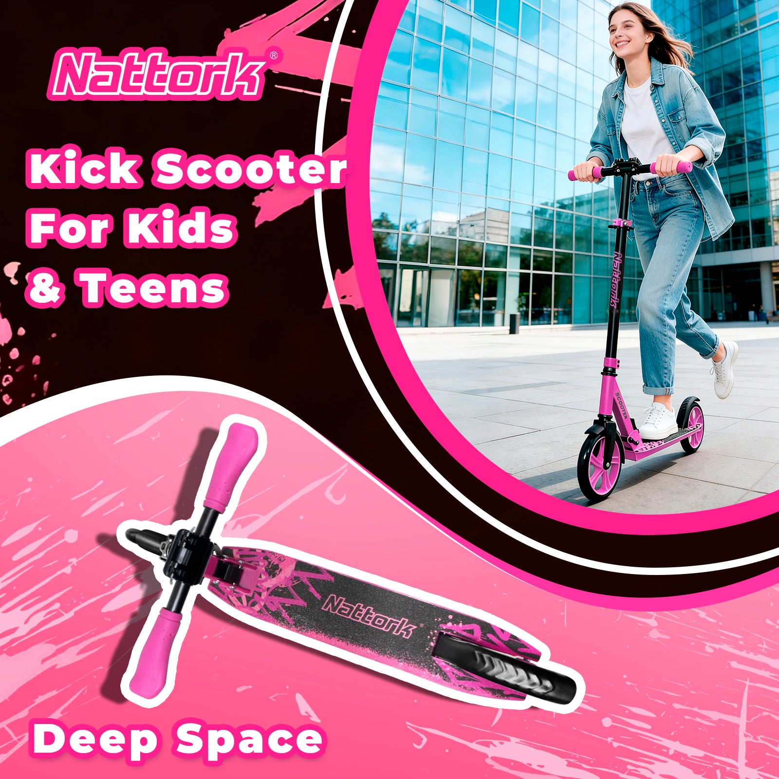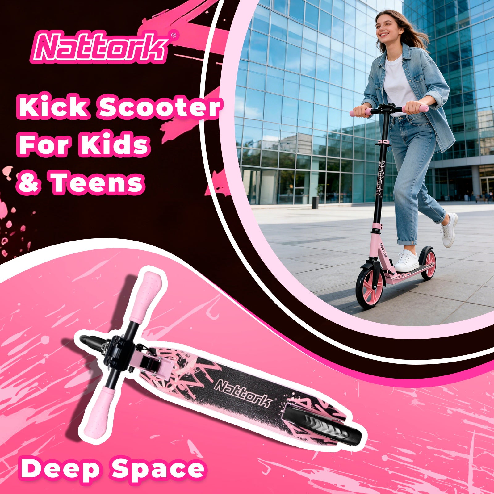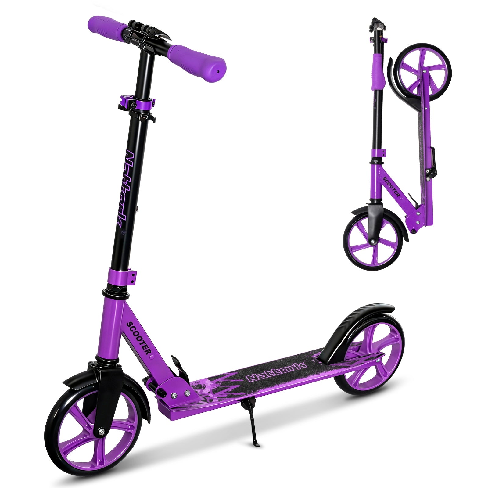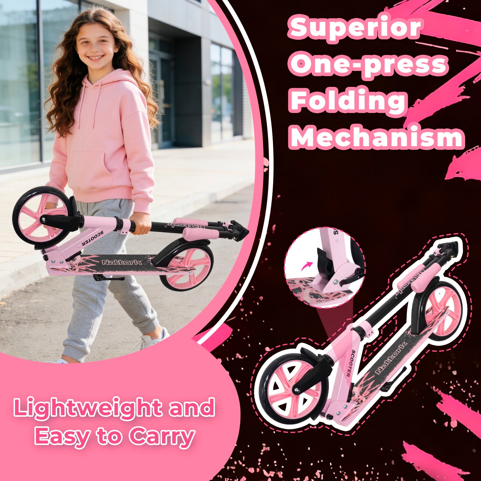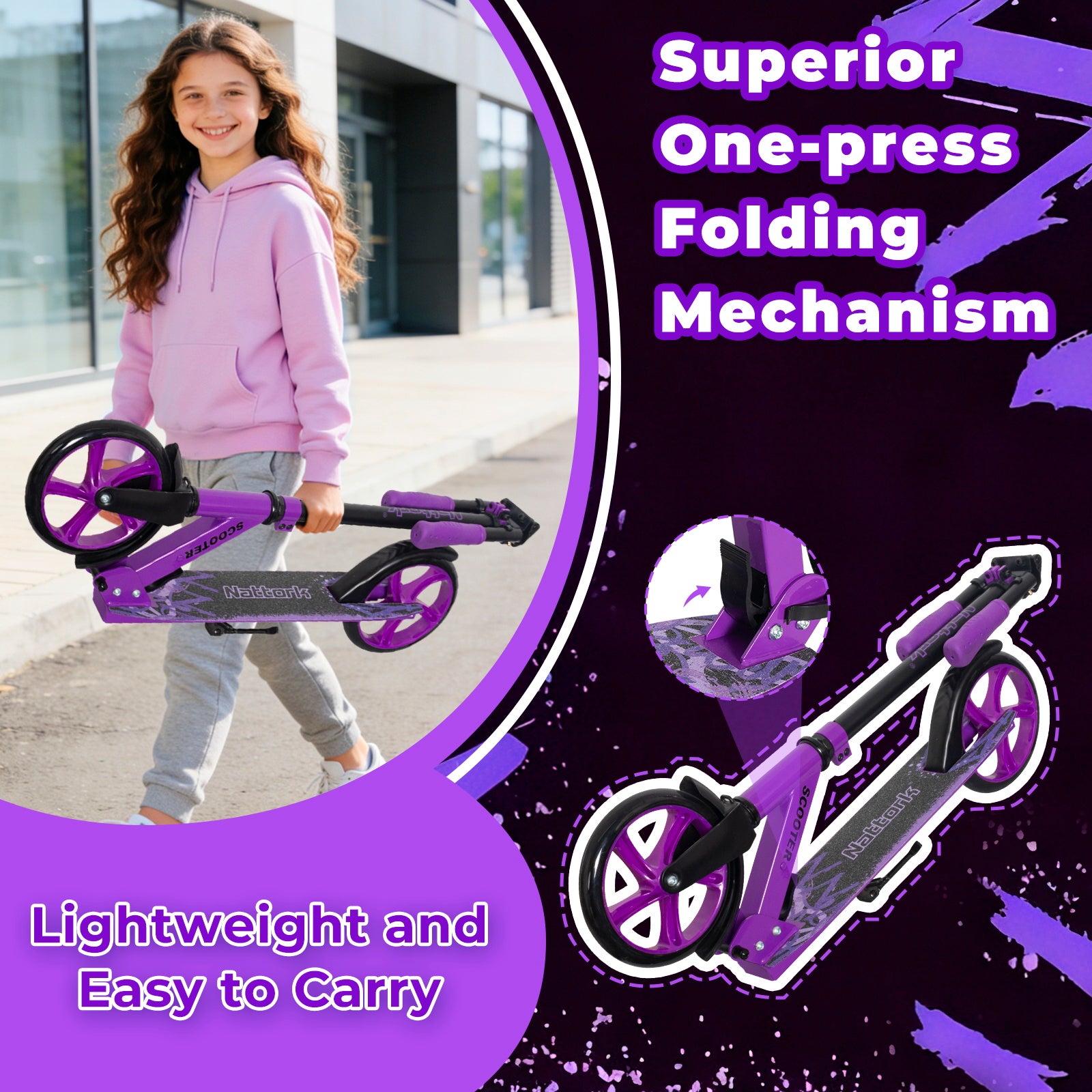 Patinete plegable y patinete Nattork para niños de 8 años en adelante, color blanco tinta