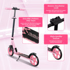 Versátil para todas las edades: ya sea para un niño principiante, un adolescente en crecimiento o un adulto que busca una solución fácil para desplazarse, este patinete está diseñado para adaptarse a todos. El manillar ajustable, que va de 35 a 40 pulgadas, proporciona un ajuste personalizado y su estructura robusta soporta a ciclistas de hasta 220 libras. Uno de los mejores patinetes para adultos por su versatilidad y rendimiento.