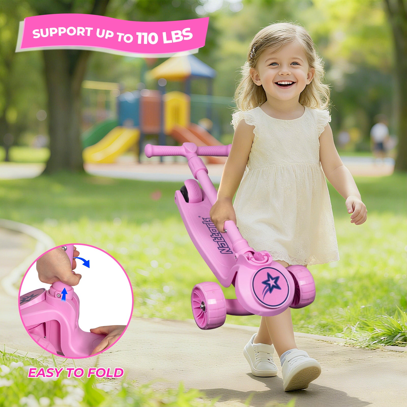 Lightweight and thoughtfully designed, the scooter folds down into a compact size for easy transport and storage. Whether it’s going into the car trunk or being carried on the go, the collapsible handle makes daily use effortless for parents.