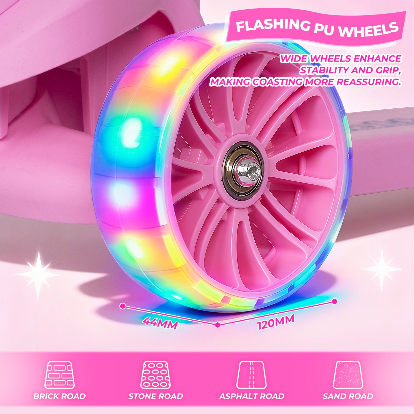 Designed with wide wheels and built-in LED light strips, the scooter lights up every ride while improving visibility and safety in low-light conditions. The wider stance also provides better balance and stability, making it a favorite for both kids and parents.