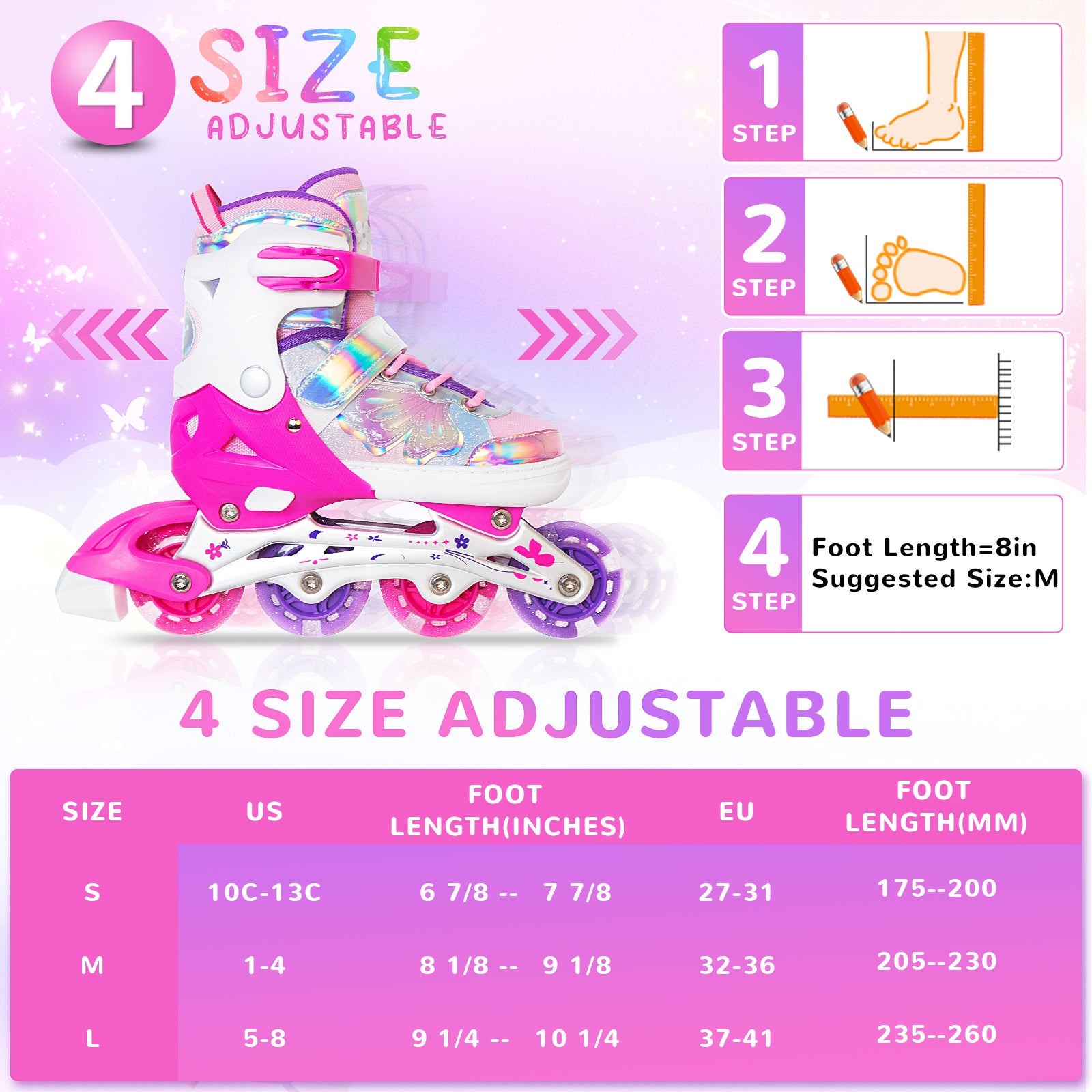 4-Size Adjustable Inline Skates