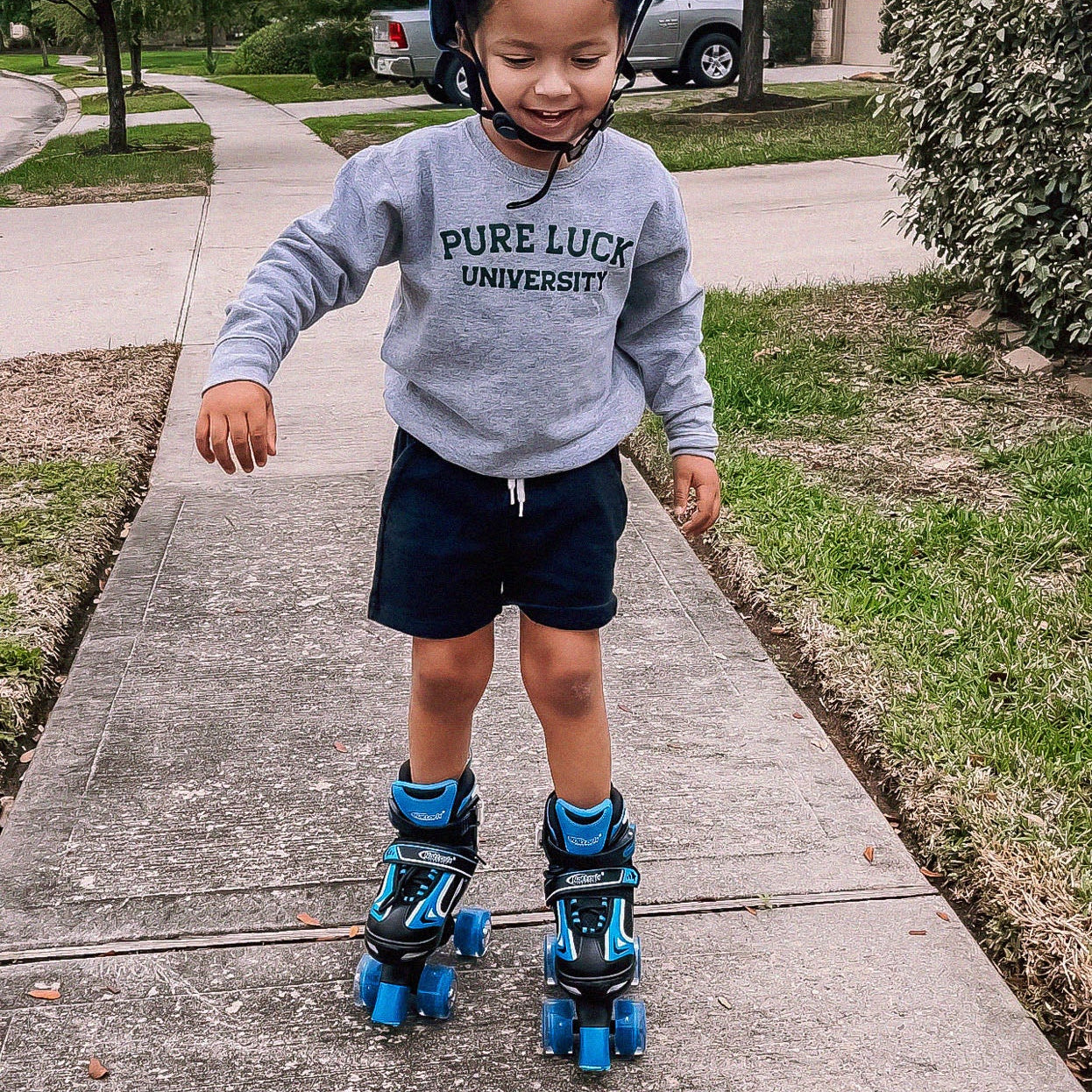 Most Nattork skates are adjustable across 4 sizes, so they can grow with your child — simply press the size-adjust button to extend the skate as their feet grow.