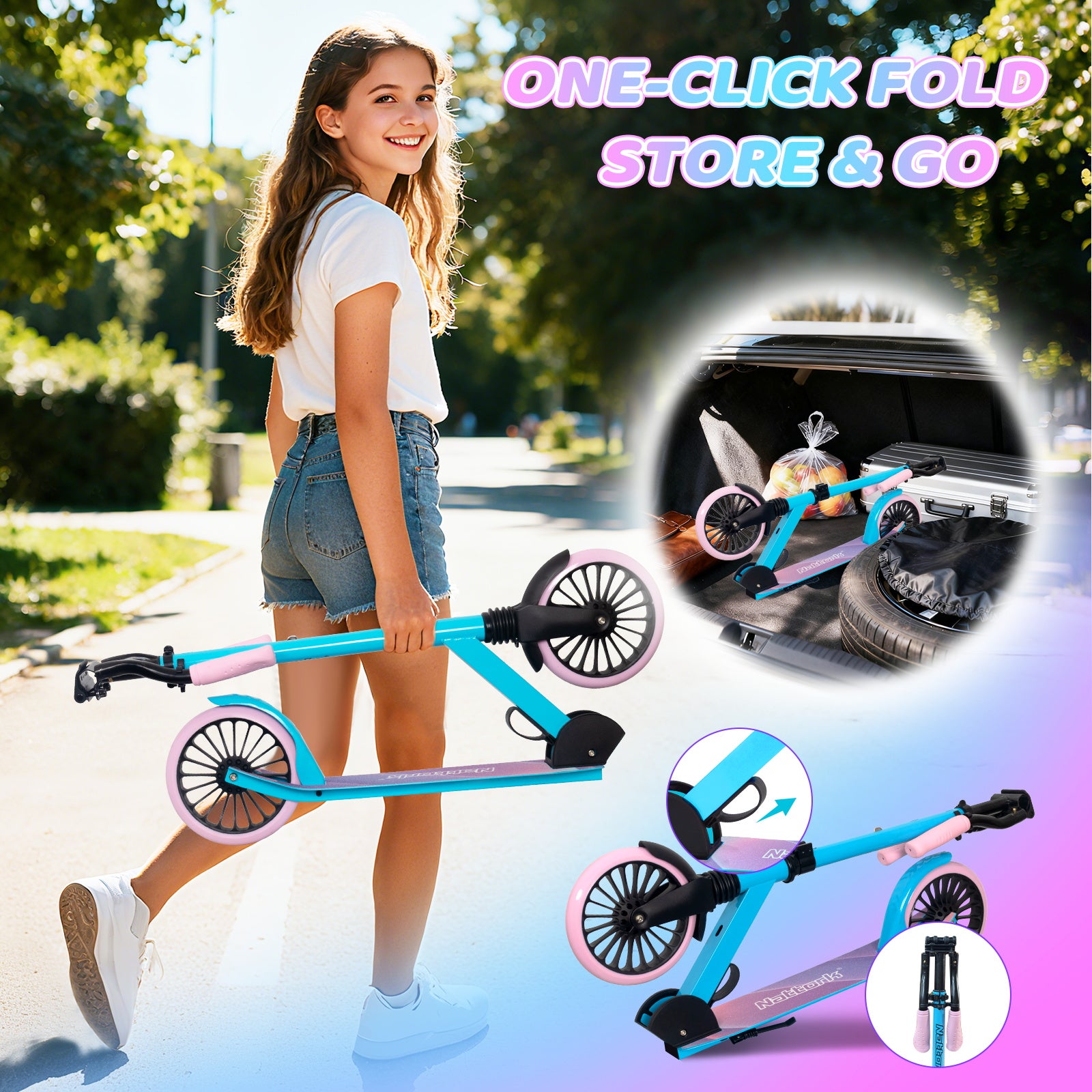 Equipped with 8-inch high-elastic PU wheels and a professional front shock absorber, this scooter delivers smooth, stable performance across gravel, bumps, and uneven paths—effortless for both kids and adults.
