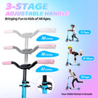 With adjustable handlebars (35-40 inches) and a frame supporting up to 220 lbs, it suits kids, teens, and adults.