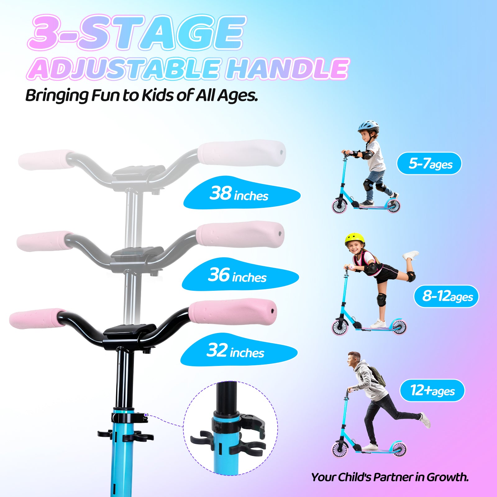 The handlebar adjusts from 32" to 38", fitting riders from around 1.2m tall kids to full-grown adults. One scooter that everyone can share—practical, versatile, and family-friendly.