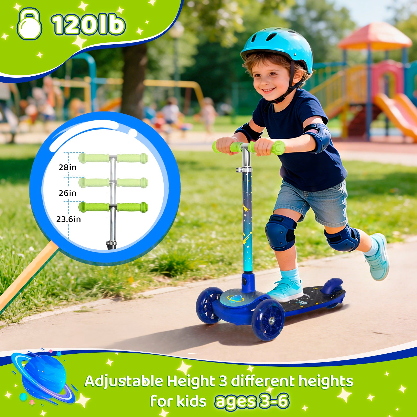 Made with high-quality, durable materials, the Adventure Glow scooter is built for everyday play. The anti-slip deck ensures secure footing, and the reliable rear brake delivers smooth, controlled stopping for worry-free rides.
