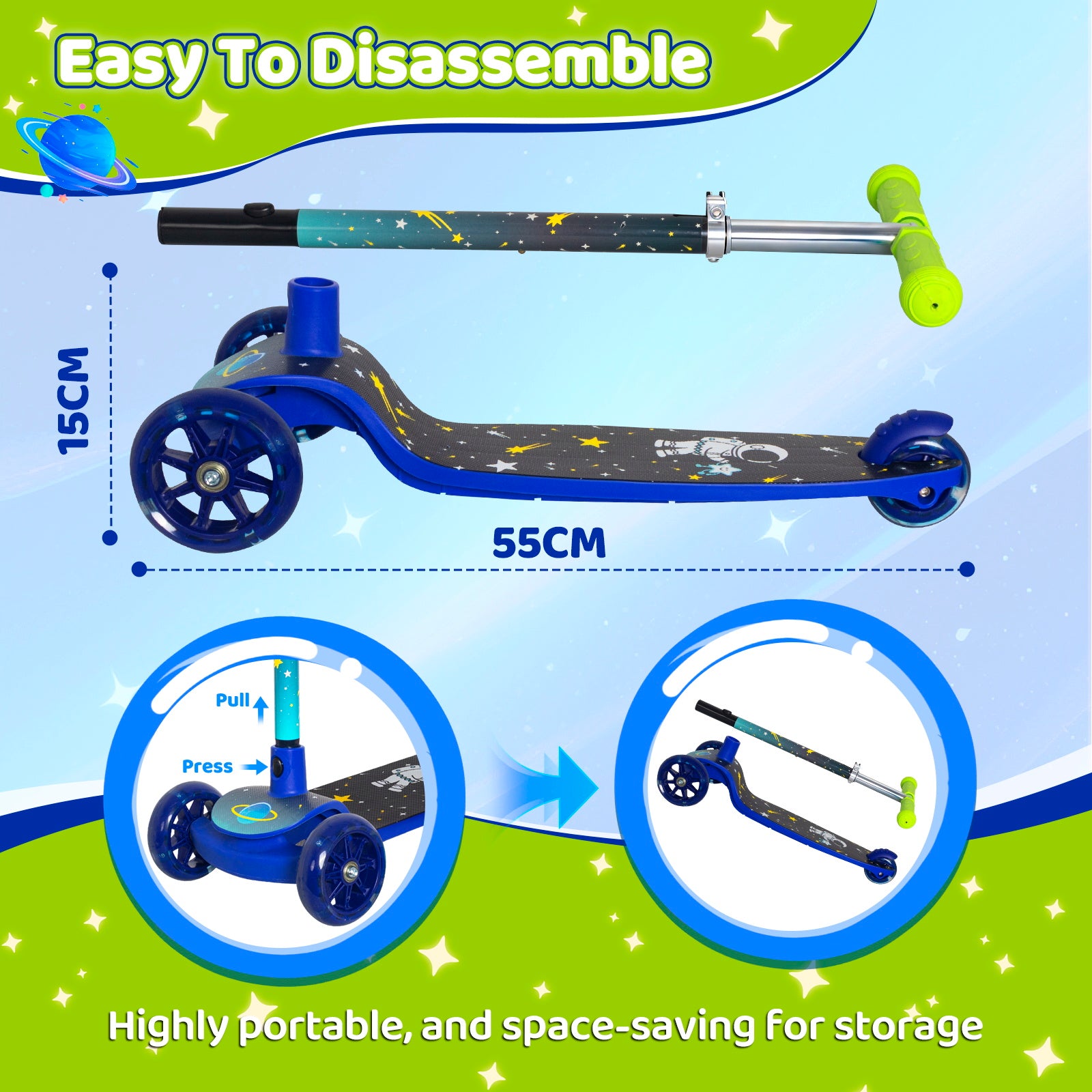 The Nattork Scooter features a delightful, foldable design that ensures easy portability and storage. With adjustable handlebars, you can customize the height as your child grows, making it a fantastic choice for families looking for a practical and compact scooter.