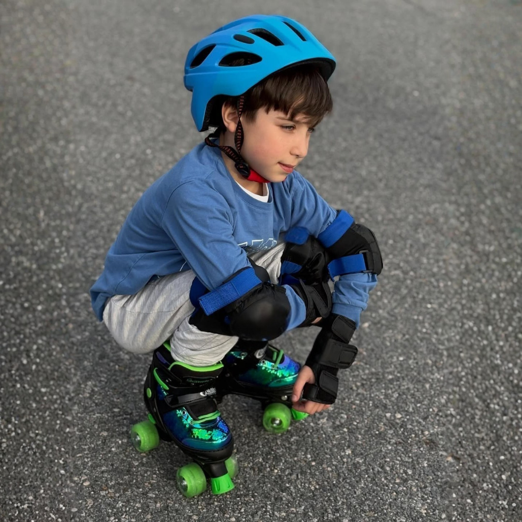 These adjustable kids roller skates feature a simple push-button system that expands to four sizes, ensuring a perfect fit as your child grows. Ideal as a first pair of beginner roller skates for both boys and girls.