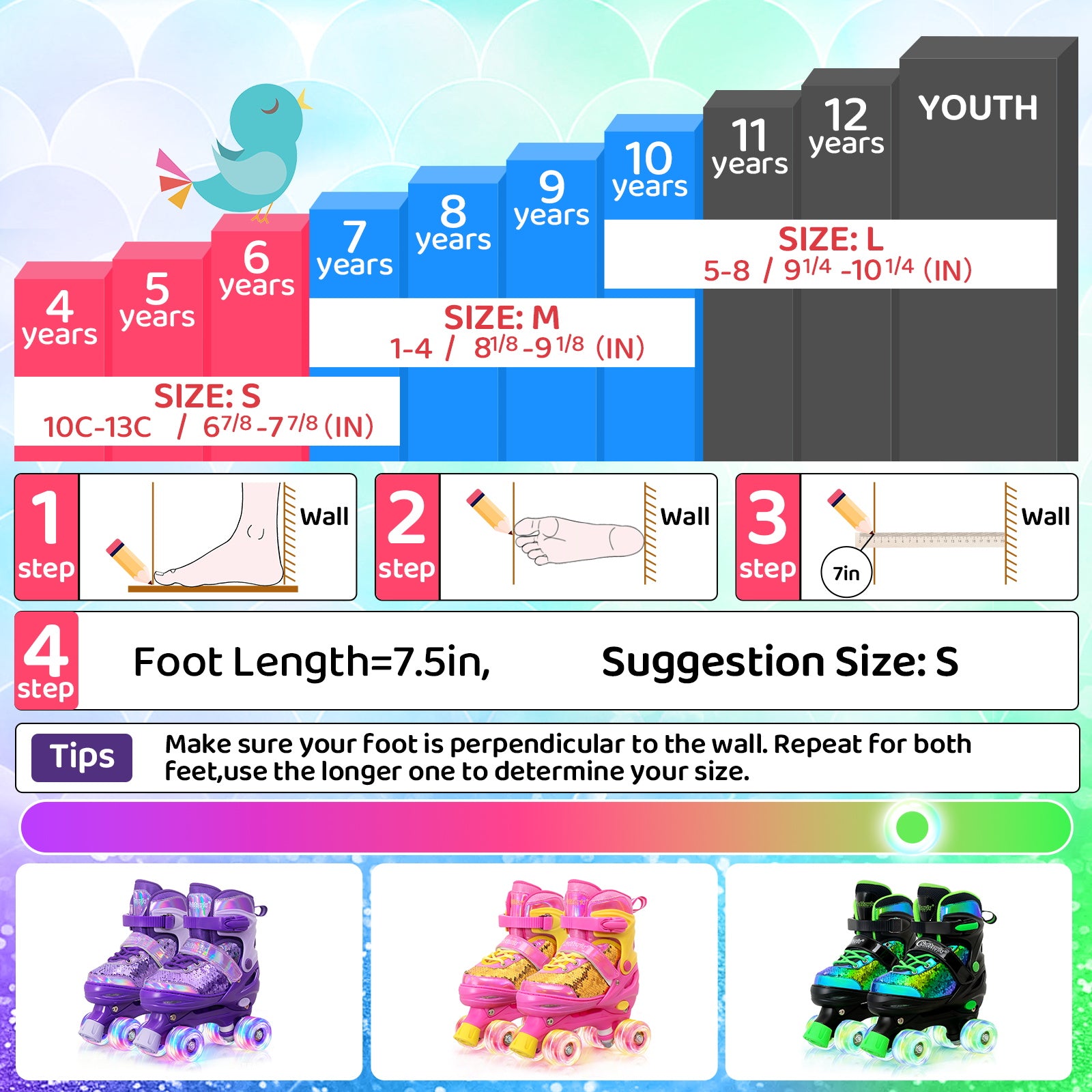 Equipped with chrome-steel bearings and 82A PU wheels, these light up roller skates glide smoothly and quietly—60% quieter than standard rubber wheels. ABEC-7 precision bearings power bright, colorful LED wheels that illuminate with every roll. Built-in brakes help beginners stop safely.