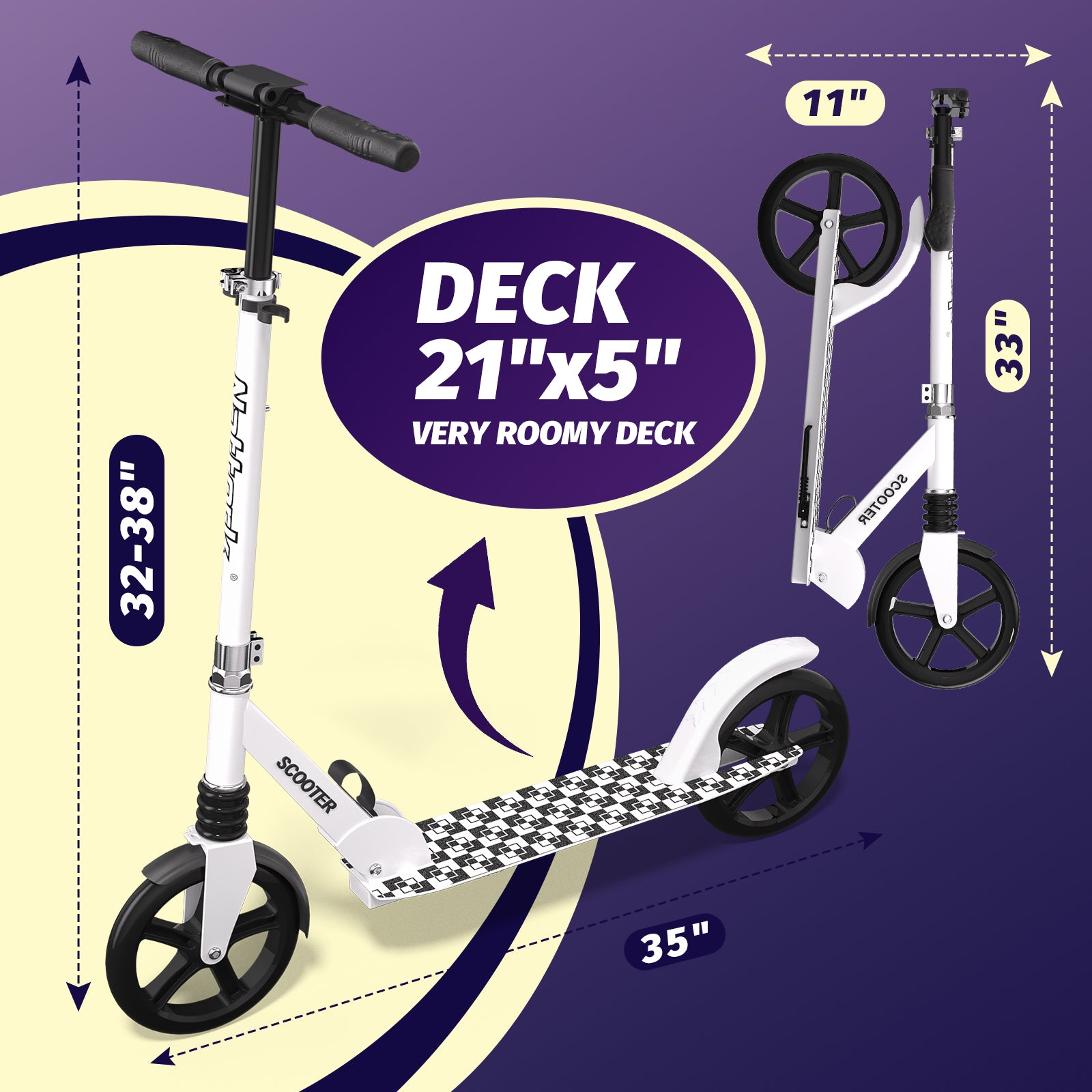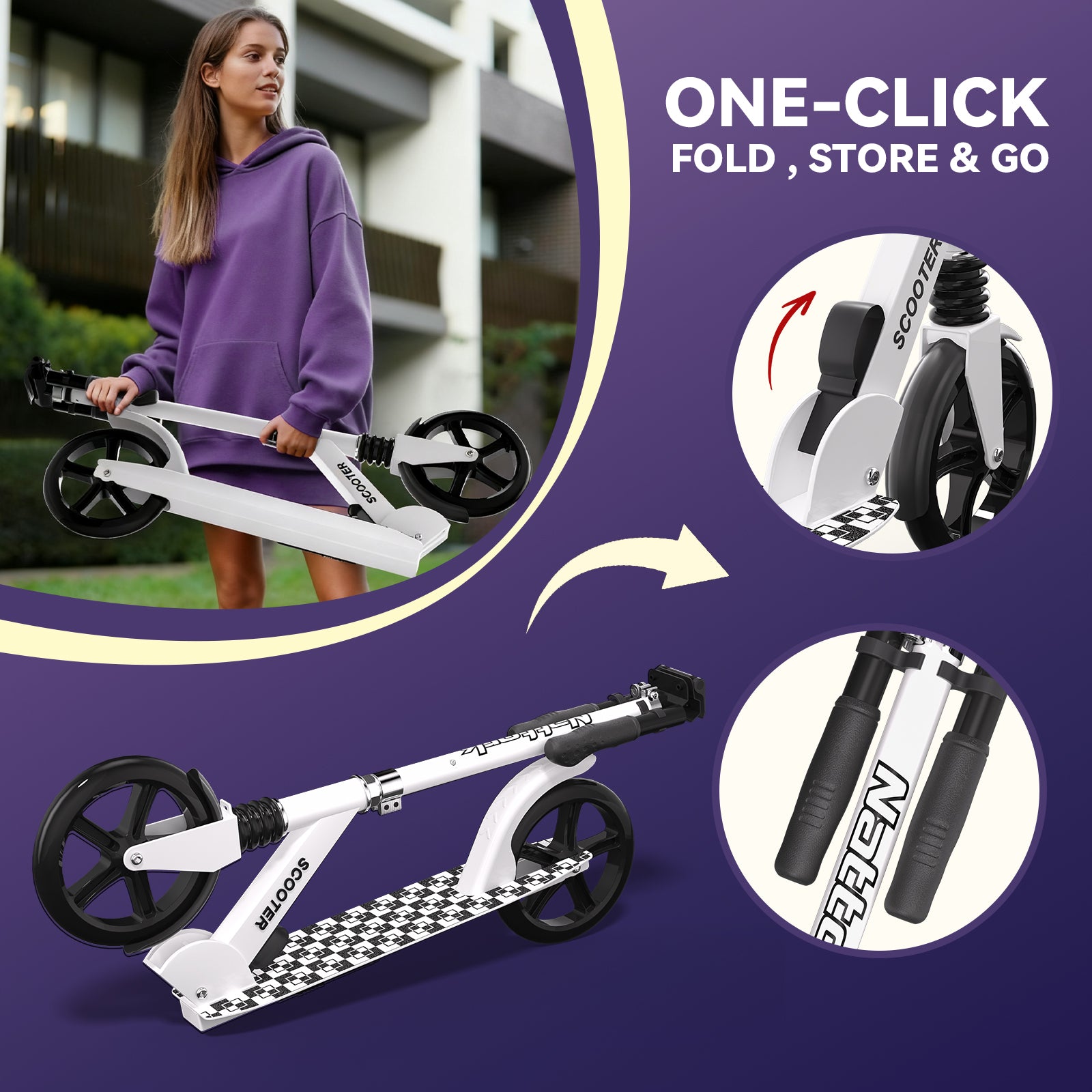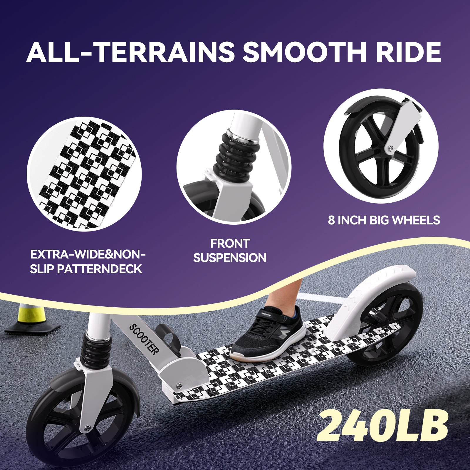 Nattork 8+ Pro Scooter for Adult & Big Kids - Ink White