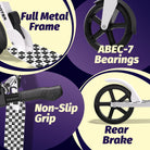 Built with a reinforced steel frame and upgraded components, this scooter supports riders up to 220 lbs for long-lasting, reliable performance.