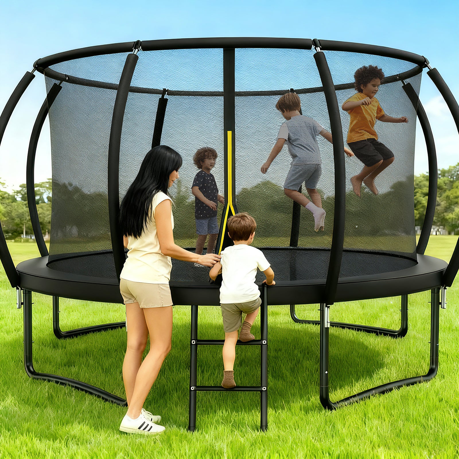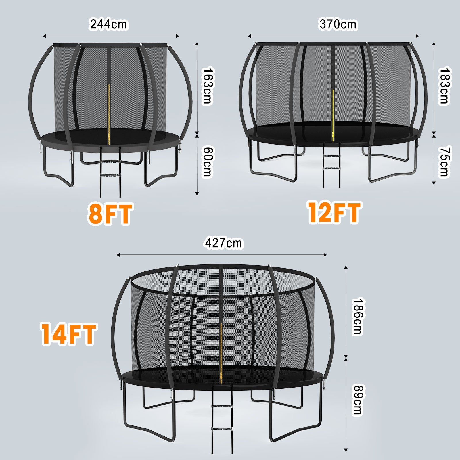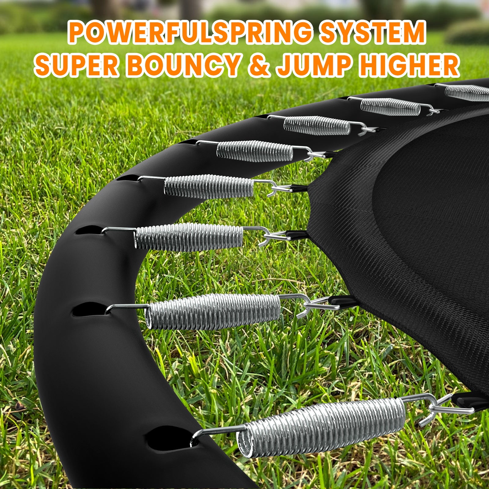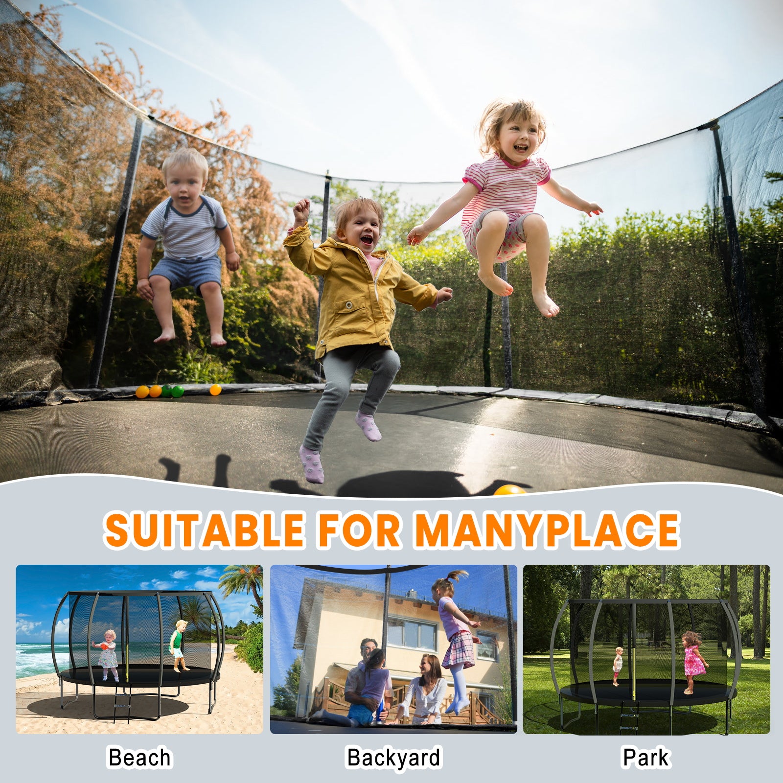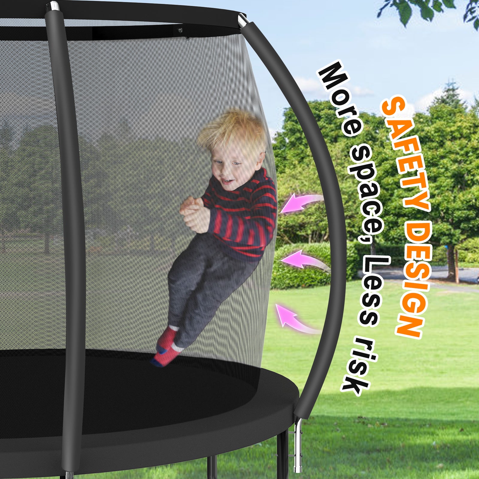 Nattork’s outdoor trampoline is fully ASTM F381-16 and CPSIA compliant for trusted safety. Its unique pumpkin-shaped design creates extra space between the enclosure net and the poles, helping prevent accidental impact and providing a safer jumping environment for all ages.