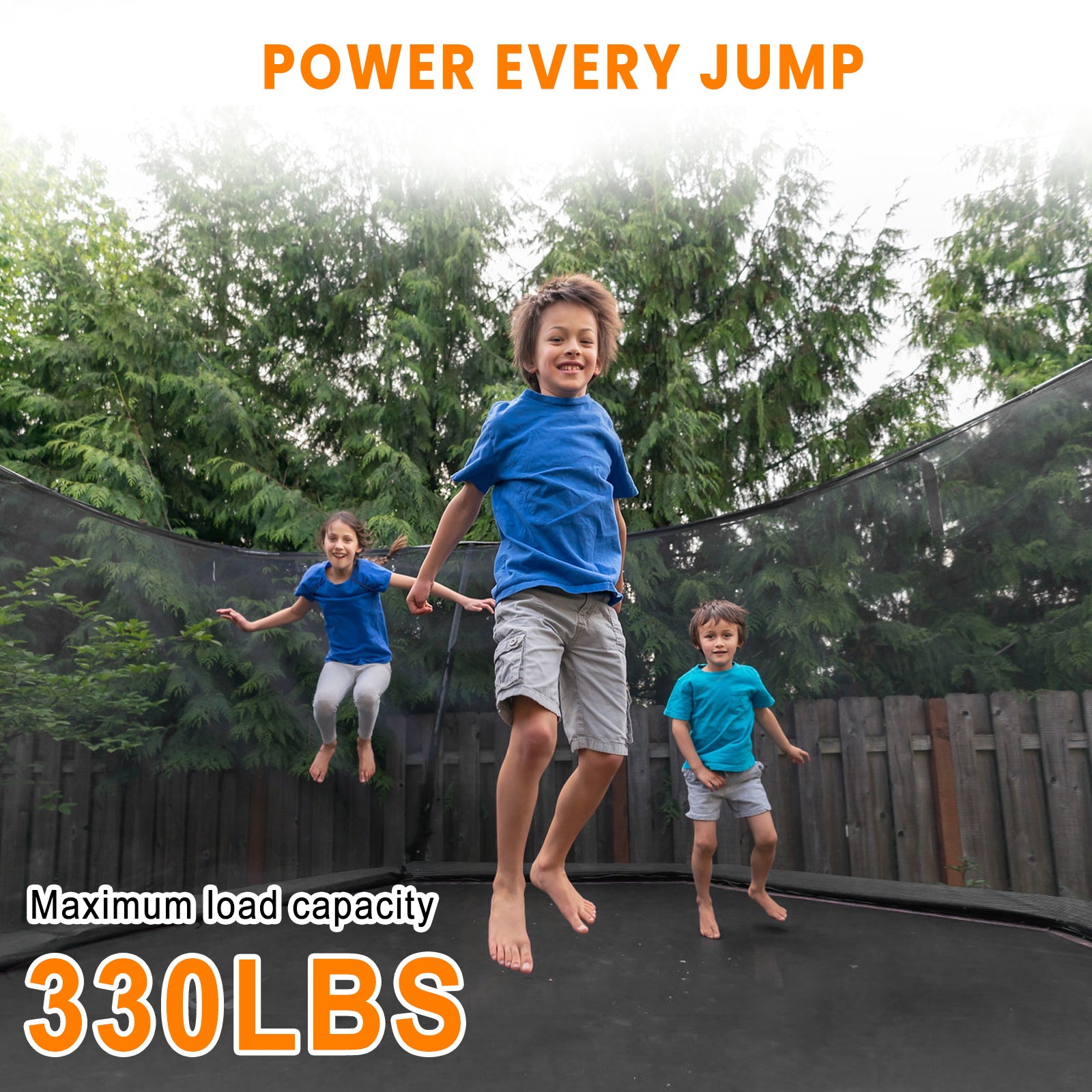Supported by 3 reinforced U-shaped legs and 6 balanced contact points, the trampoline stays stable and secure during use. It’s been tested through tens of thousands of jumps and supports up to 330 lbs, ensuring durability for years of family fun.