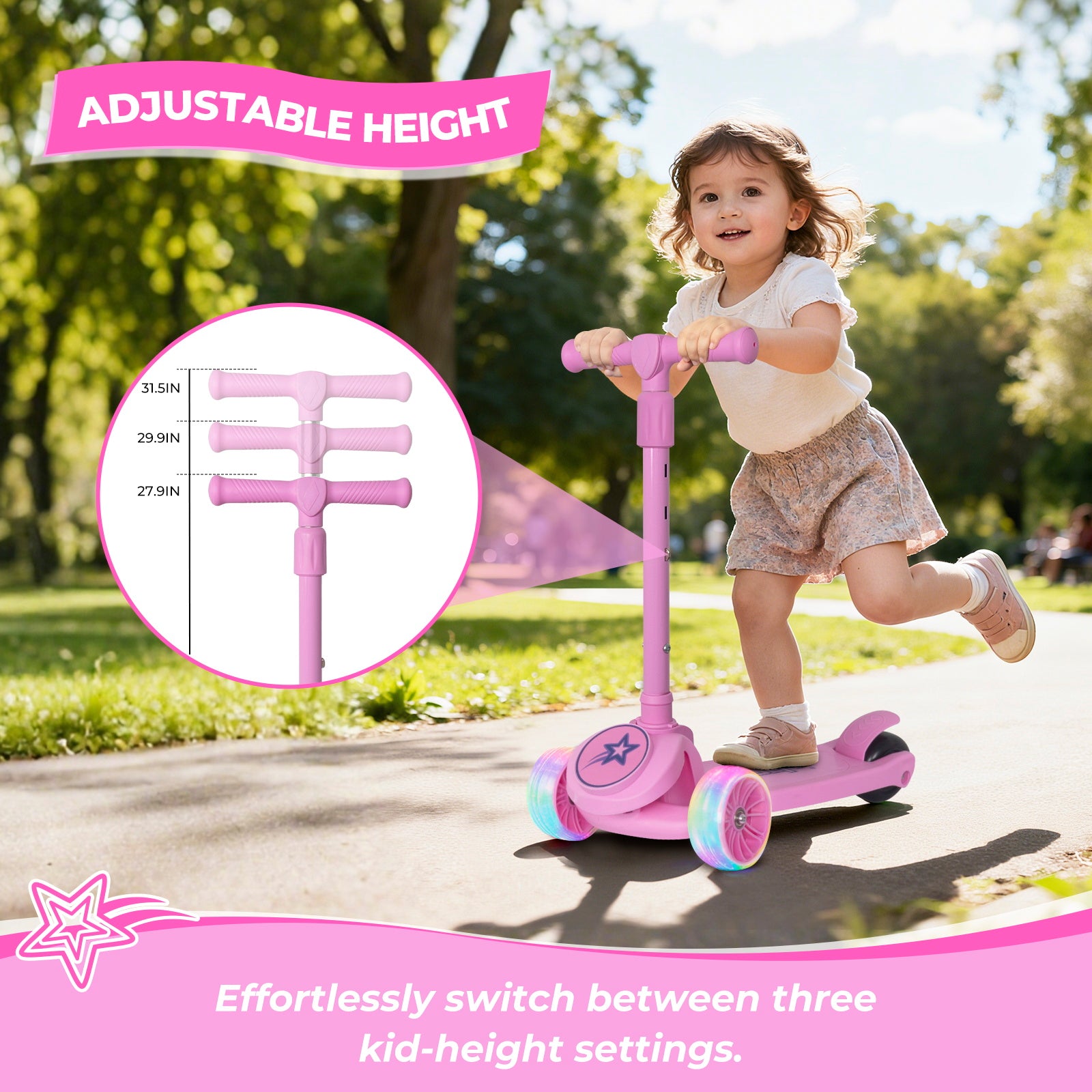 With lean-to-steer technology, kids learn to turn naturally by shifting their weight—helping develop balance, coordination, and confidence. The handlebar adjusts to three heights (27.9" / 29.9" / 31.5"), so the scooter grows right along with your child.